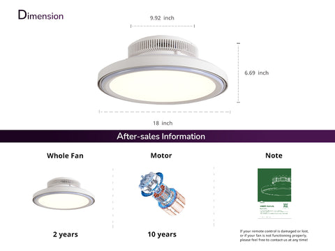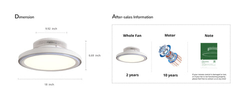 - Whisper-Quiet DC Motor & Optimized Airflow: Equipped with a noiseless DC motor (<40 dB), this bladeless design ensures rapid, even airflow for spaces up to 20㎡. The enclosed flush-mount structure enhances safety and suits low ceilings in bedrooms, kitchens, or living rooms.