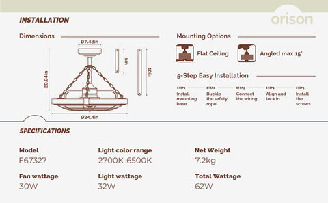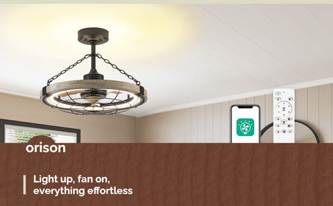 - Orison Ceiling Fan 67327 - a seamless blend of rustic charm and industrial style.