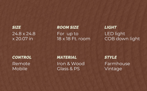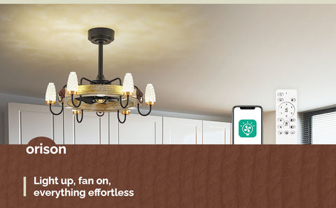 24.8" Orison Fandelier Ceiling Fan With Lights, Dimmable Rustic Fan Light with Remote/APP Control
