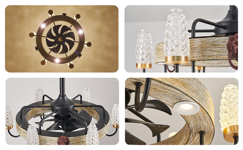 • 【Unique Ceiling Fans with Lights】Thefandelier ceiling fan with light features 6 pinecone LED Lights and 3 spotlights, crafted with sturdy iron and solid wood, durability and longevity, ensuring a lasting addition to your home decor.