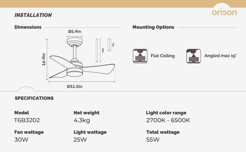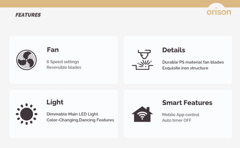 • Orison Modern Ceiling Fan with RGB/Dancing light, app remote control - Modle T6B3202