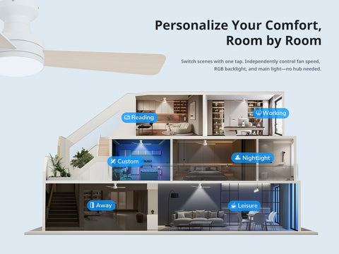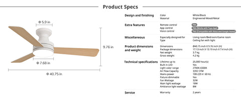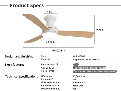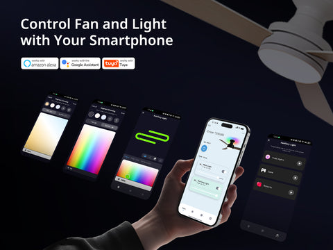- Hands-Free Smart Voice Control: Compatible with Alexa and Voice control, this smart ceiling fan supports easy voice commands. Use the Tuya Smart app or included remote to control fan speed, lighting, and scheduling—no hub required.