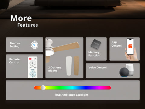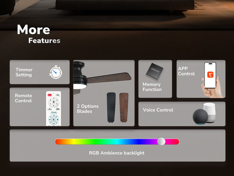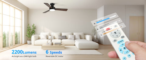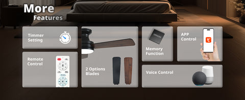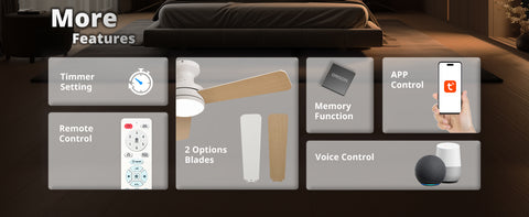 - Versatile Fan Modes: Enjoy flexible comfort with 6 fan speeds, reversible airflow for summer and winter, natural breeze simulation, group control, and a programmable on/off timer. The remote beep can be muted for a quieter experience. Plus, the smart memory function restores your last fan and light settings when powered back on.