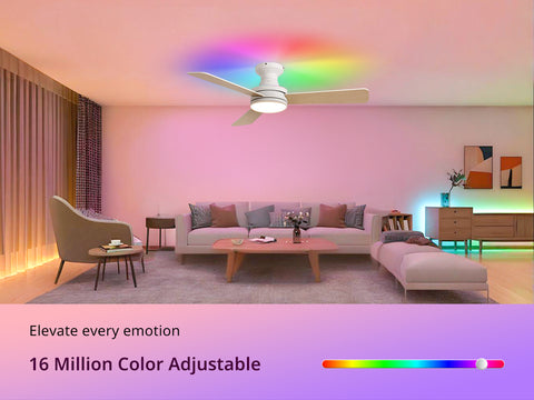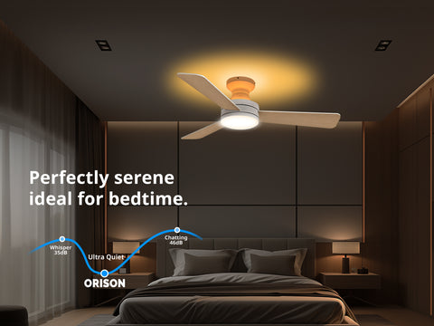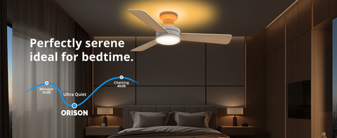 purchased this fan as it was for a low ceiling I did have a problem at first and contacted Orison who solved the problem very quickly for me, the fan is very quiet on all speeds and the mood light is fantastic you can work it from the remote or put the app on your phone and work it from there the dimming feature is good as you can have 3 different colour light modes that dim, I would thoroughly recommend this to anyone that wants a good all round fan/light for any room