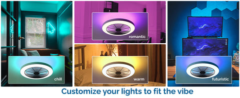 Easy to install, it so bright, the colors are vibrant. And the most important part for me the fans many speeds keep the small room cool. The remote control is something that I need for everything now.