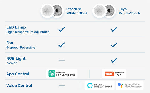 - 【Smart APP & Voice Control】Add smart fans light in Tuya Smart App and connect its to Amazon Alexa/Google Assistant account in 2.4Ghz network environment. Using simple voice commands to control bladeless ceiling fan with lights.