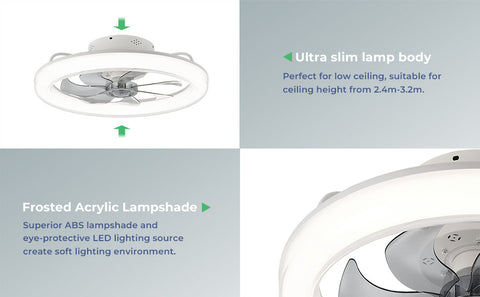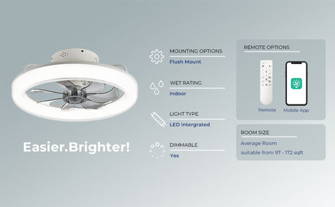 - 【App & Remote Control】You can set and control all functions with the remote and app,all steps become easy and easy. This low profile ceiling fan with light will auto-save all settings when turning the light off, so things will remain unchanged when you next turn it on.