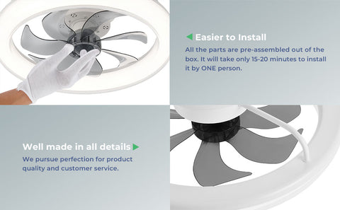 - 【Noiseless DC Motor】With high-quality copper motor, this white ceiling fan with light can reduce more energy cost and run more smoothly. Giving you a quiet night while providing strong airflow. And it is super easy to install, just need 5 simple steps within 15 min.