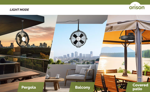O.Y This fan packed with so many features, fan 6 speeds, light dimable, light color adjustment, timer, direction change: very usefull if wind is in opposite direction, varible breaze like speed chamging function. Its awesome outdoor fan hang where you want , i use shepherd hook and it woks great.