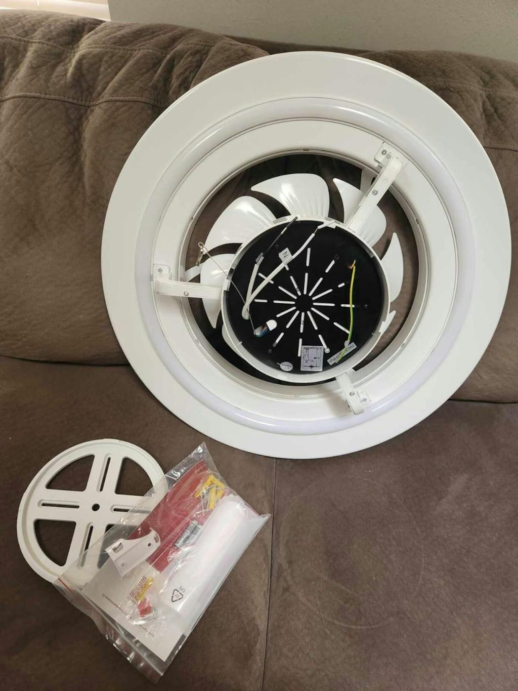 my first impression after unboxing. It is a bit bulky and the design is plain. after using it for a while, here is why I recommend it. It has 2 sets of lights. The main one has a spectrum of white to warm and is pointing downward. it is dimmable as well. the 2nd one is colorimetric aiming upward. we installed it in the nursery and it easily draws our little boy's attention when we change the color of the 2nd light. The next part is even "cooler". The Fan has 6 speeds. the first 3 are so quiet. You don't hear it at all. the best part is that the fan rotation can be reversed. The air is pulled from the room to the ceiling. you don't need to worry about the airflow hitting the baby through the night. all functions can be controlled via a remote or the smartphone app. So awesome.