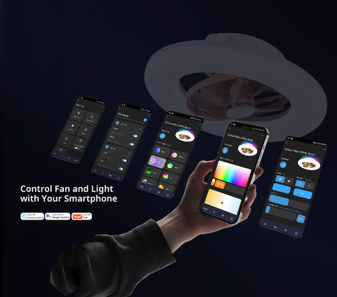 - 【Hands-Free Voice Control】Add our ceiling fan with lights remote control to the Tuya Smart App and connect it to your Amazon Alexa/Google Assistant account in a 2.4GHz network environment. With simple voice commands, you can control your ceiling fan with lights, such as "Alexa, turn on/off the light" or "Alexa, turn on/off the fan". You can even say "Alexa, set the ceiling fan to 40%" and free your hands from having to find the switch and make manual adjustments.