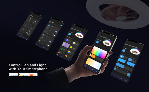 - Smart Control: Control smart ceiling fan and light separately via remote, Tuya app, or voice command (Alexa/Google supported). Both the remote and app remember your last settings—no need to reset every time. Timer function also included
